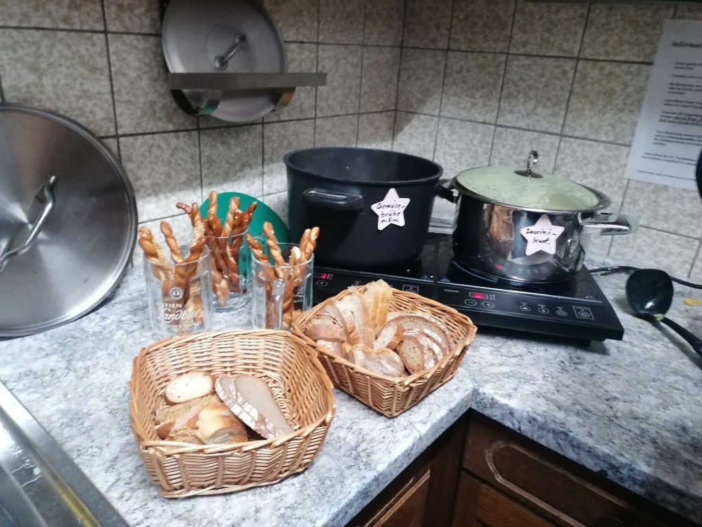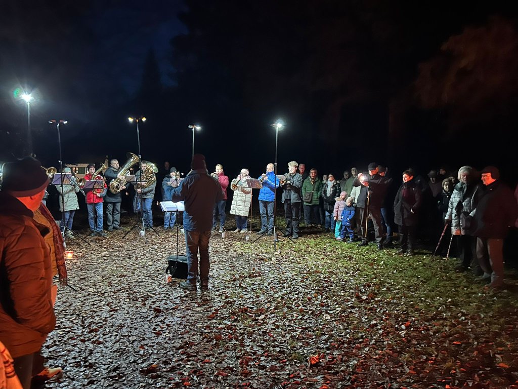 In ihrer Feuerrede hob Bauer hervor, welche Besonderheit die Wintersonnenwende heute für die Menschen, aber auch für die Natur darstellt: Die Tage sind kurz geworden, die Nächte lang und dunkel. Die Natur scheint still zu stehen, doch gerade zur Wintersonnenwende geschieht etwas Bedeutendes: Das Licht kehrt zurück, symbolisiert durch das Feuer. Schon lange bevor es elektrisches Licht gab, Uhren oder Kalender den Lebensrhythmus der Menschen bestimmten, war die Sonne der verlässlichste Taktgeber des Lebens. Sie schenkte Wärme, Wachstum und Hoffnung und erinnerte unsere Vorfahren daran, dass die Natur unter der Erde neue Kraft sammelt, um im Frühjahr wieder zu neuem Leben zu erwachen. Auch das Weihnachtsfest symbolisiert durch Jesu Geburt die Rückkehr des Lichts und der Hoffnung. Bauer erinnerte die Gäste daran, dass die Wärme nicht nur vom Feuer oder der Sonne, sondern auch aus den Herzen der Menschen kommt. Sie rief dazu auf in unserer lauten, hektischen und fordernden Zeit innezuhalten und sich auf die Werte der Naturfreunde - Achtsamkeit, gegenseitige Unterstützung, Respekt und den Schutz und Erhalt der Natur zu besinnen. Begleitet durch die Schönberger Bläser wurden gemeinsam einige Weihnachtslieder am Feuer gesungen, bevor sich alle bei Glühwein, Früchtepunsch und einem opulenten Suppenbuffet stärkten. Die Vereinsmitglieder hatten 13 verschiedene Suppen gekocht.