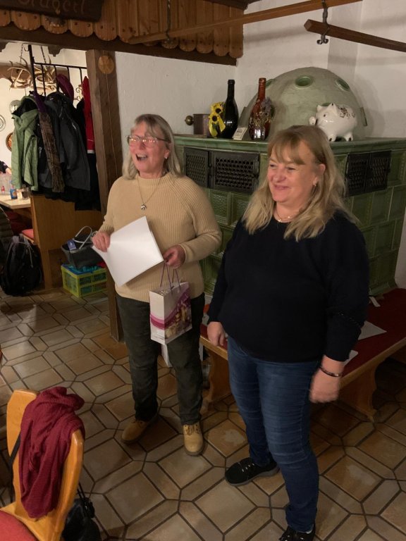 Im gut geheizten, weihnachtlich geschmückten Naturfreundehaus fand anschließend die Weihnachtsfeier statt. Nachdenkliche und heitere Weihnachtsgedichte stimmten die Gäste auf die Ehrung der langjährigen Mitglieder ein. Angela Bauer beglückwünschte Nicole, Wolfgang, Marvin und Sarah Kaika, Andrea Mehlig, Birgit und Roland Kestel und Judith Ostheimer für 10 Jahre, Elke Macher für 25 Jahre, Hans Merkel für 40 Jahre und Max Lindner, Pia Meiler und Ruth Singerer für 50 Jahre Mitgliedschaft bei den Naturfreunden Lauf. Hierbei wurde sie unterstützt vom 3. Bürgermeister des Marktes Schnaittach, der die Grüße und Glückwünsche der Gemeinde überbrachte. Bei guten Gesprächen klang der Abend harmonisch aus.