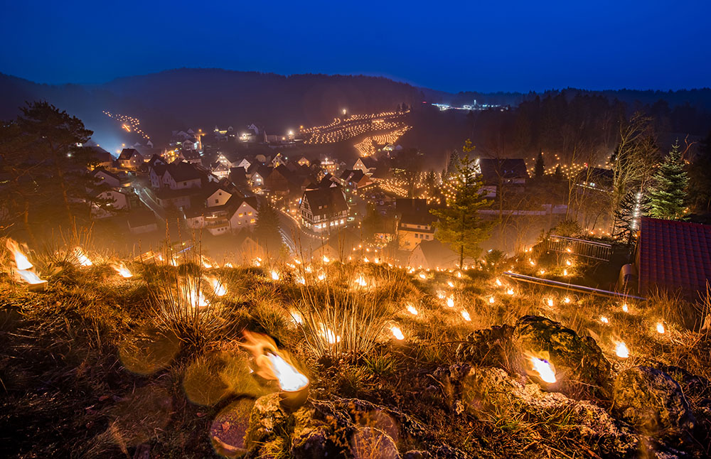 Anlässlich der „Ewigen Anbetung in Obertrubach“ findet alljährlich am 03. Januar ein grandioses Lichterspektakel statt, indem tausende Wachslichter an den Berg- und Felsenhängen entzündet werden. Gemeinsam entdecken wir einen der besonderen Schätze der Fränkischen Schweiz, der so nur noch in wenigen Orten stattfindet.