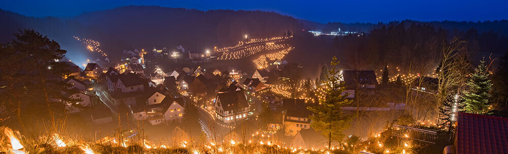 Wir besuchen das Lichterfest in Obertrubach und die dortige Prozession. Anschliessend kehren wir zum Essen beim "Elch" in Thusbrunn ein.
