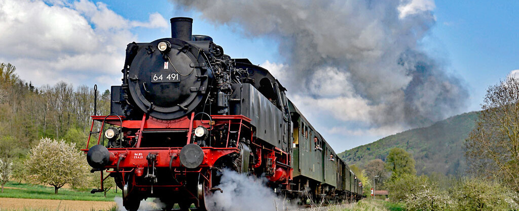 Die Dampfbahn Fränkische Schweiz bringt uns von Ebermannstadt aus durchs malerische Wiesenttal bis nach Behringersmühle. Von dort führt uns eine Wanderung über die nördlichen Höhen der Region wieder zurück in Richtung Ausgangspunkt. Auf halber Strecke steigen wir wieder in den Zug ein geniessen nochmal die Ausblicke auf die Landschaft.
